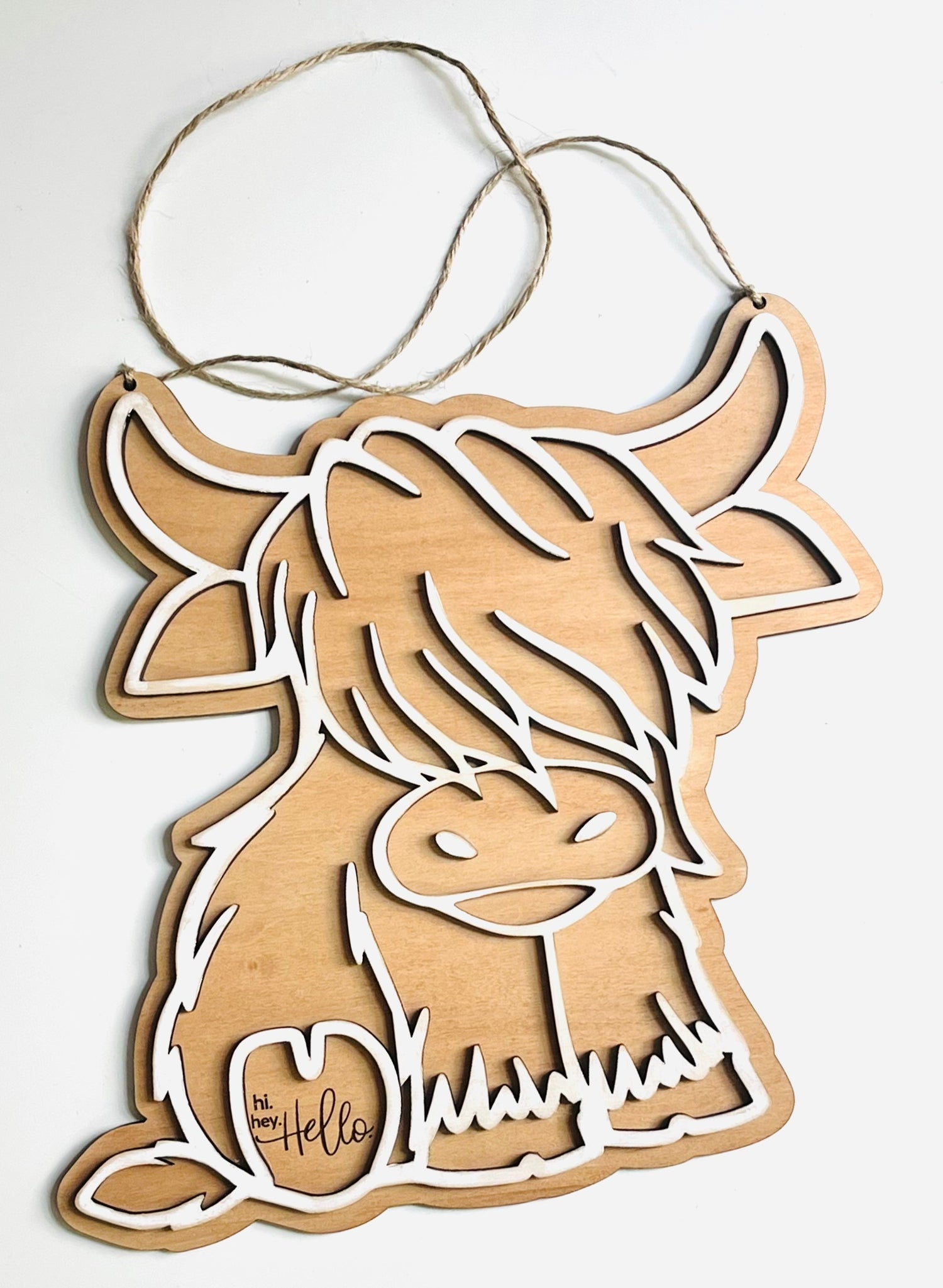 "hi hey Hello" Highland Cow Door Hanger